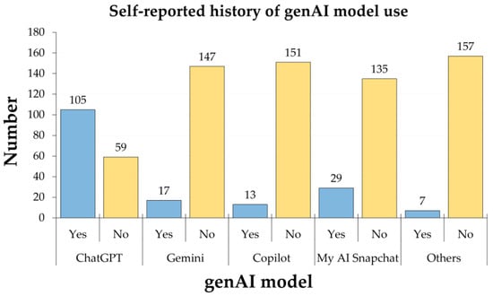 Next, the participants were asked about their previous use of genAI models (ChatGPT, MS Copilot, Gemini, My AI Snapchat, others).