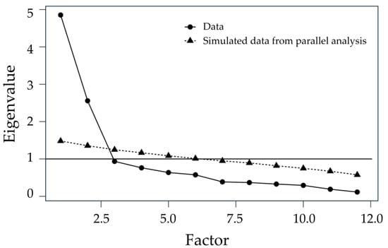 Scree plot representing the eigenvalues of the factors identified by the exploratory factor analysis (EFA).