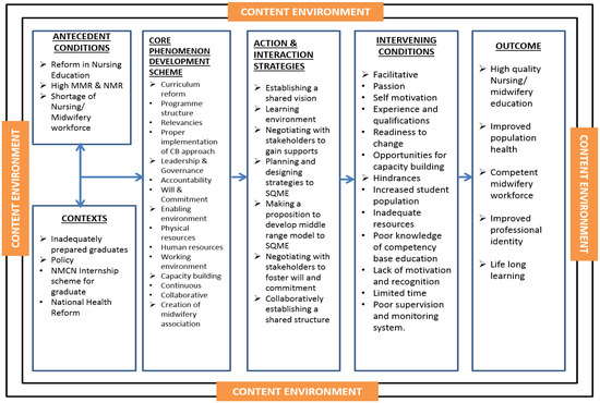 Context refers to the environment in which core concepts are developed. According to this middle-range model, the process of developing SQME within the Nigerian context takes place within certain situations. Therefore, the antecedent conditions for SQME will be considered. These include high MMR and Neonatal Mortality Rates (NMRs), an increased demand for health services, shortages of healthcare workforce, and inadequately prepared graduates. Nigeria is among the countries in the Africa region with the highest MMR and NMRs. Placing such demand on the health system is an enormous challenge to the system. Meeting this demand has been a great challenge over the years as population growth increases with changing health conditions, which in turn requires modern and evidence-based management systems to be in place. The World Health Organisation calls for countries to create initiatives to make up for the shortage of workforces, such as training the lower cadre of health workers and increasing student intake into health professional education. Several factors have been identified that contribute to poor population health. Some of these factors include a severe shortage of the healthcare workforce, especially midwives, and incompetent midwives providing maternity services that are of low quality.
