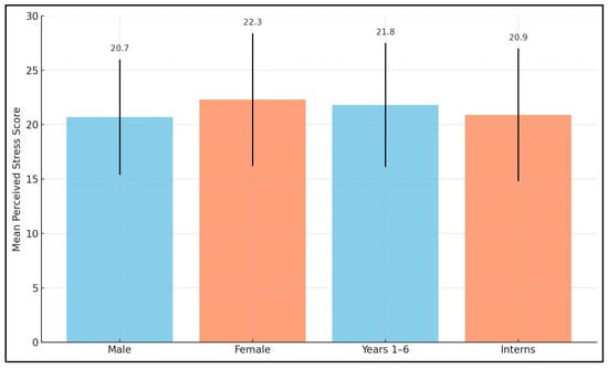 - Jain, A.; Mehdi, A. A Study on Perceived Stress among Medical Students from a Private Medical College in North India. Indian J. Psychiatry 2021, 64 (Suppl. S3), S582–S583. [Google Scholar]