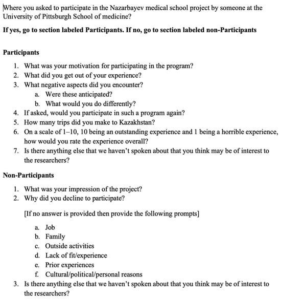 Faculty members from the University of Pittsburgh who actively teach in the medical school were asked to help develop and formalize the curriculum for NUSOM. Some of these faculty members were also asked to travel to NUSOM to provide hands-on mentoring. As the project unfolded, we noted that, while most of the faculty were eager to participate, some individuals were reluctant or even refused. We sought to explore the rationales behind their decisions, and for those who did participate, we wanted to learn what they had taken from their experiences. Specifically, the goals of this study were to interview those in the faculty who were asked to participate in the UPSOM-NUSOM project about motivations for accepting or rejecting the offer to participate. For those who accepted, we also sought to assess what benefits were gained or detriments were noted, personally and professionally.