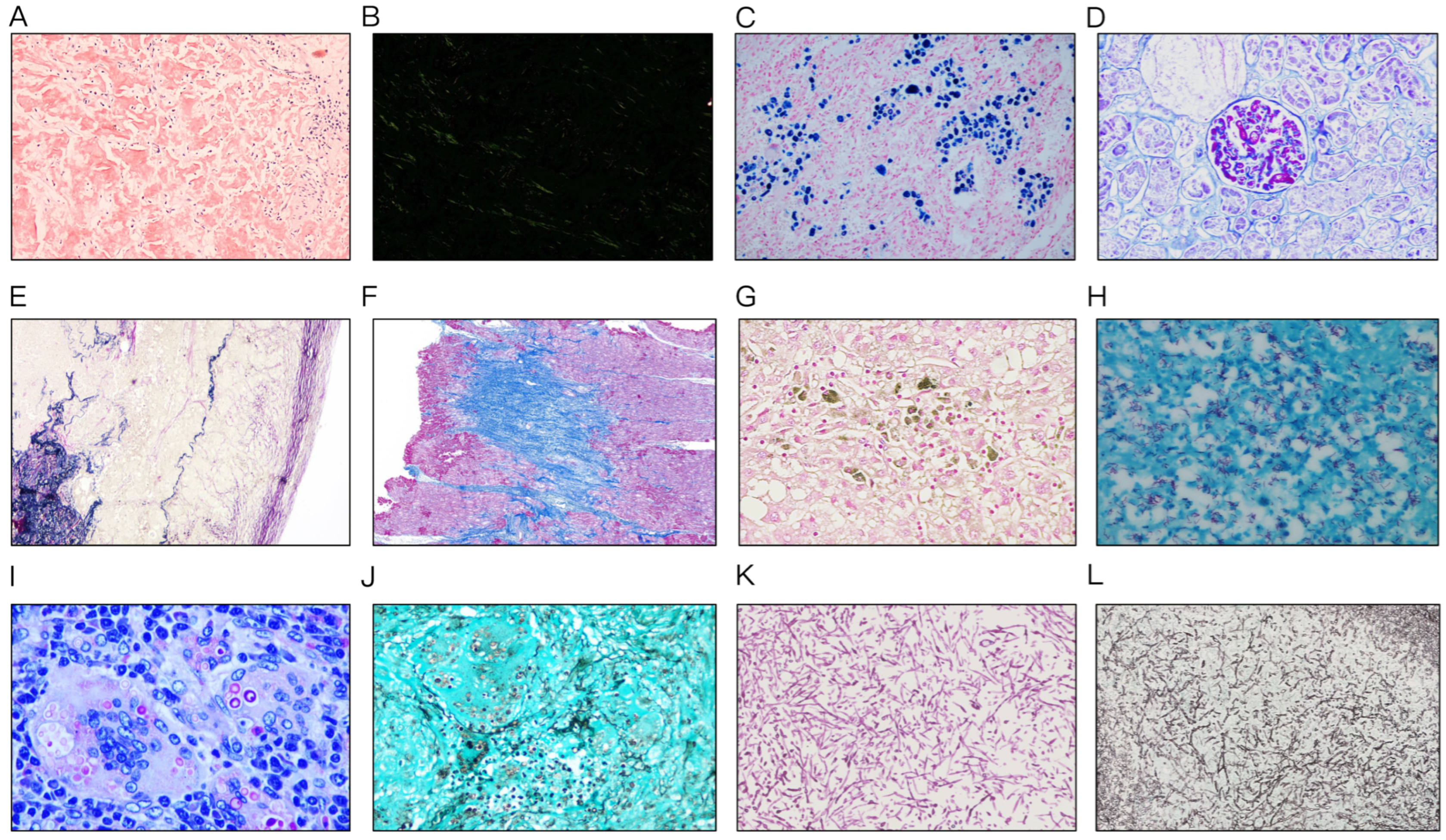 Mycobacterium tuberculosis), PAS, and GMS staining (