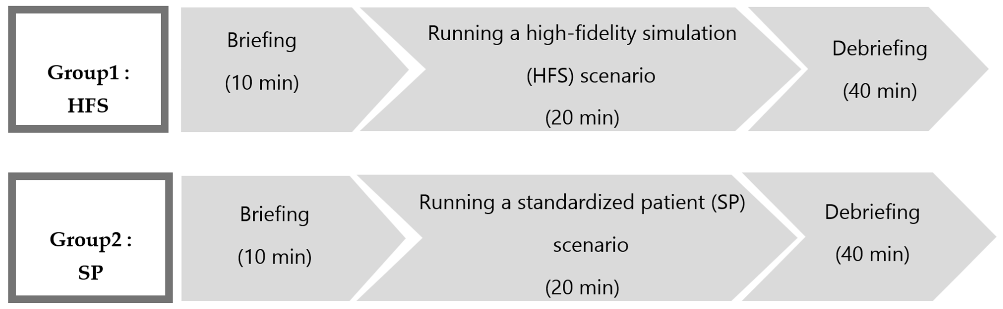 - Hu, L.-Y.; Li, S.-Q.; Zhou, Z.-Y.; Wang, M.-L.; Zhou, L.-S. Effect of high-fidelity human patient simulator manikins combined with standardized patient simulation scenario on clinical thinking in pediatric nursing education. BMC Nurs. 2025, 24, 1129. [Google Scholar] [CrossRef] [PubMed]
