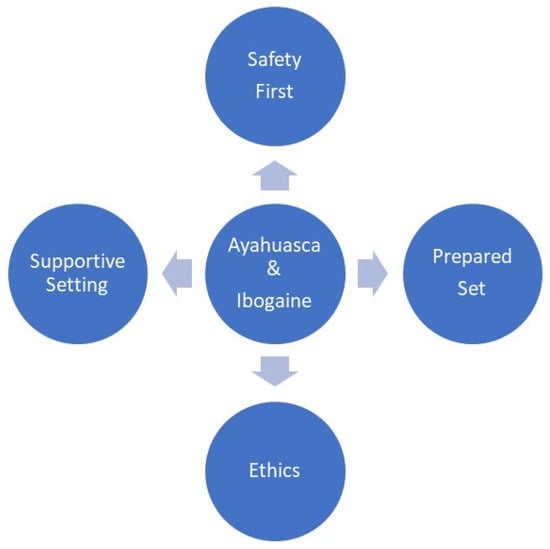 - Rocha, J.M.; Reis, J.A.S.; Bouso, J.C.; Hallak, J.E.C.; Dos Santos, R.G. Identifying setting factors associated with improved ibogaine safety: A systematic review of clinical studies. Eur. Arch. Psychiatry Clin. Neurosci. 2023, 273, 1527–1542. [Google Scholar] [CrossRef] [PubMed]