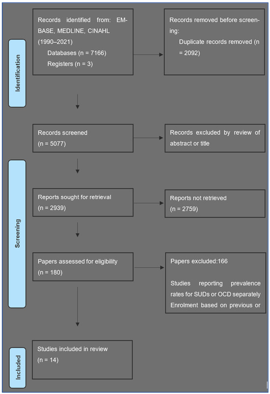 Studies reporting prevalence rates for SUDs or OCD separately were excluded as the prevalence of comorbidity required both a psychiatric and SUD diagnosis within a defined population. Those employing study enrolment based on current or history of a SUD (common for many randomised control trials and some follow-up studies) were excluded because of selection bias. Any disagreements were resolved between the raters.