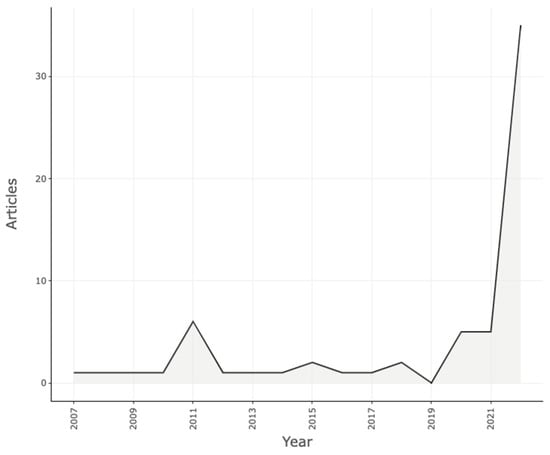 The research on the metaverse has been increasing since 2019, as shown in Figure 2. Although the first relevant paper was published in early 2007, it is only since 2019 that publications have begun to increase significantly, with a peak in 2021, which is also the year in which Mark Zuckerberg announced the change of name from Facebook to Meta. Publication trend renders the metaverse a young research field.