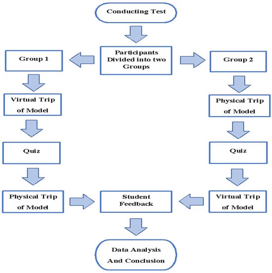 Figure 6. One group was given a virtual tour using SSA, while the other was assigned a physical visit. In both trips, details regarding the model were taught to the students. A week after the trips, the students were evaluated through a quiz to determine their knowledge retention (