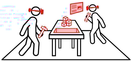 XR-based collaboration also benefits researchers as an experiment platform to investigate the dynamics underlying user–user or user–agent collaboration. Compared to physical reality, XR environments are more controllable since part of the environments are computer-generated. This allows researchers to repeat an experiment setup consistently across participants [5]. This consistency is advantageous for different types of studies, such as those involving confederates to create a specific collaborative scenario. Human actors’ behaviors may fluctuate across sessions and, consequently, become an extraneous factor confounding the results [12,13]. Whereas in XR, collaborators can be replaced with virtual agents that can precisely replicate their behaviors following pre-defined scripts [14].