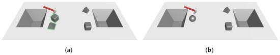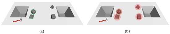 In the examples shown in Figure 8 and Figure 9, the parent object uses XR MUSE’s custom collision management system that does not trigger physical interactions. The geometrically simpler sphere of the parent transform is deliberately larger in diameter and completely encloses the actual object, enabling the following two aspects: first, separating the interactions between objects from the physics, which allows it to abstract tasks from the Unity engine’s physics system, and second, activating physical authoring when a user needs the network object (e.g., when grabbing the object). Since only the position and rotation of the real parent are synchronized over the network, the networking does not affect the physics.