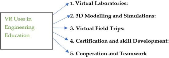 - Integrating with Different Technologies: extremely immersive and engaging educational settings can be produced by fusing virtual Reality with haptic feedback, augmented reality, and machine intelligence [11,22].