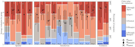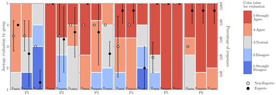 Cronbach’s was used to assess the internal consistency of the items of the questionnaires in Phase 1 and Phase 2.2, respectively. The Phase 1 questionnaire exhibited an value of 0.88, while Phase 2 had an value of 0.81. In both of these cases, the value exceeded 0.7, which is generally considered an “acceptable” level of reliability with values above 0.8 being considered “good”. The test-retest reliability of the participants was also checked by evaluating the -coefficient between two items that were similar: P5 and P6. In this case, the value was found to be 0.89, again exceeding 0.7, demonstrating that the participants were reliable.