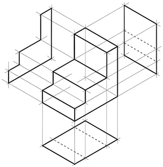 Few testimonials are as impressive as the one given by Sheryl Sorby in her 2014 ‘TEDx’ talk entitled Recruiting Women to Science, Technology, Engineering and Mathematics (https://www.youtube.com/watch?v=cJZIhl28HFI (accessed on 1 January 2020.)). In this lecture, Sorby explains with great frankness her successful passage through the various stages of her education, until she entered college and enrolled in engineering, a STEM career. It was then that, for the first time in her life, she had significant problems with a drawing subject in which she had to produce orthogonal projections (see Figure 1). She could not believe what was happening to her, especially since it was something that came easily to most of her male classmates. With effort, she was able to overcome this problem.