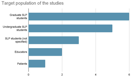 - The study was targeted towards students or trainees in the speech therapy and language pathology field. The research encompassed studies that either directly targeted ST students or incorporated them within larger mixed cohorts.