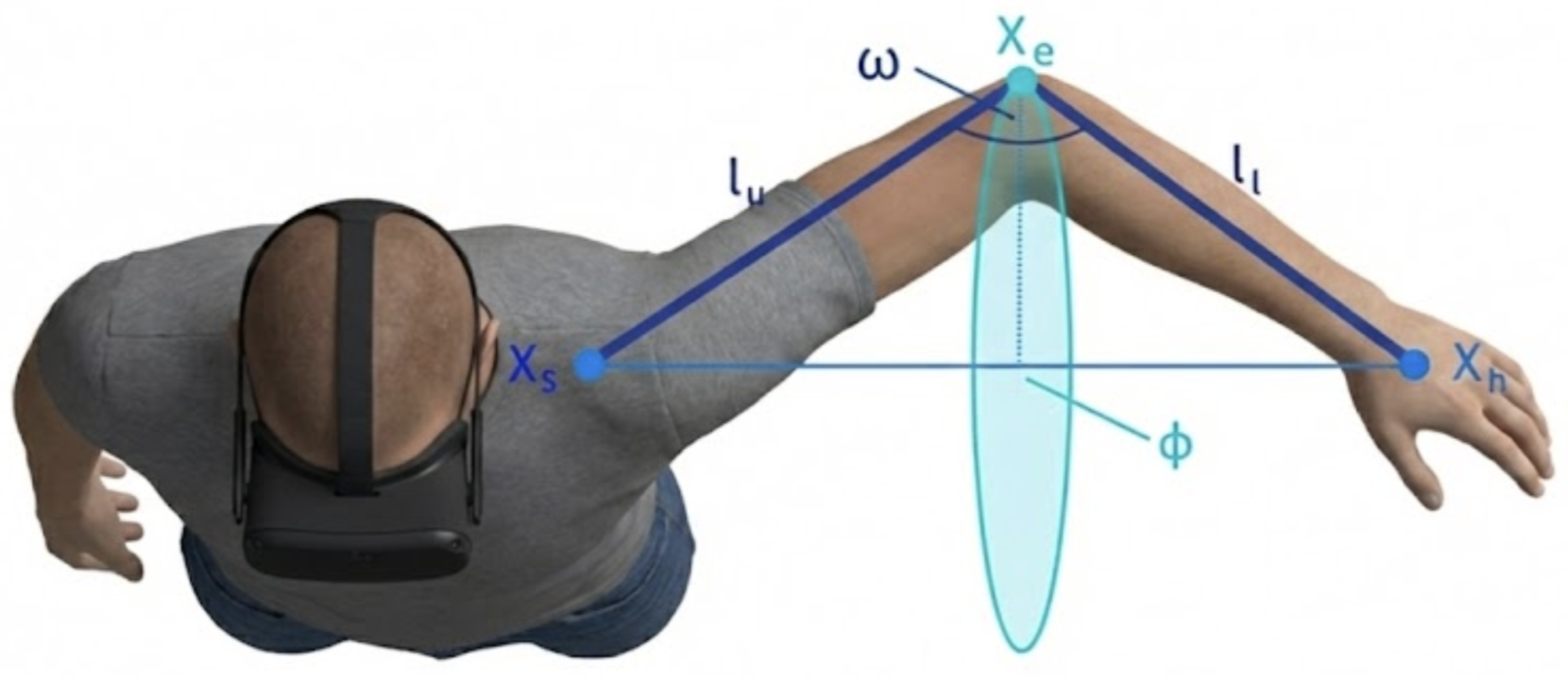 Figure 1. To calibrate the solver for each user’s body shape, the user’s arm length and height must be provided as input. On the other hand, the distance between the neck and the head, as well as the width of the shoulder, is fixed.