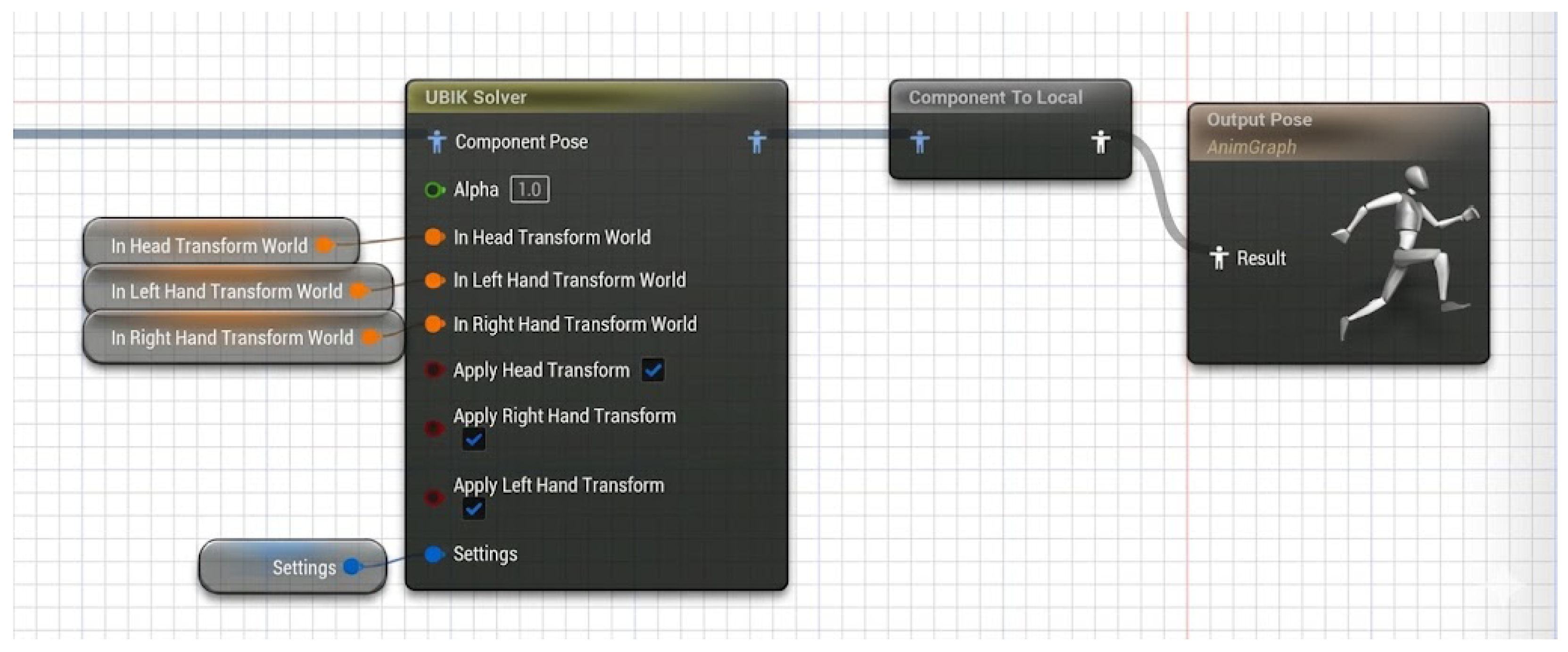 We implemented the Inverse Kinematics (IK) system using the UBIKSolver plugin (UBIKSolver plugin repository: