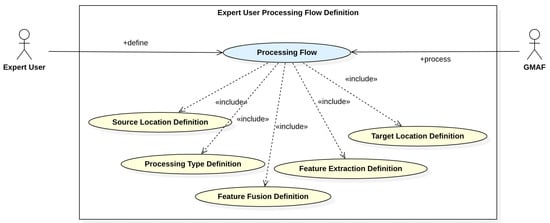 This kind of integration has to be defined by an additional user type, an expert user. Hence, following the user-centered system design approach, an additional use case is introduced (see Figure 6). This use case describes the expert tasks for the definition of processing flows. These tasks are typically performed in a preparatory step. It must be noted that also this preparatory step directly influences the MMIR processing steps and also has to remain explainable.