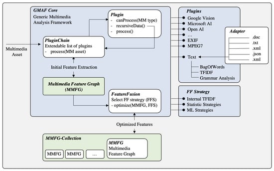 In our previous and related work [], we introduced a generic multimedia analysis framework (GMAF), which provides a flexible plugin architecture for the integration of plugins for the extraction of MM features of different MM content objects (see Figure 2).