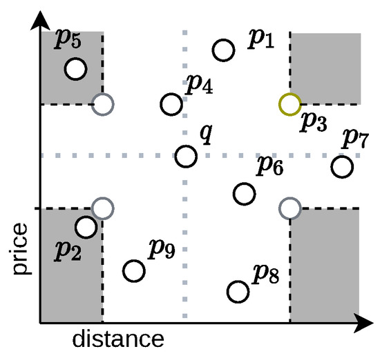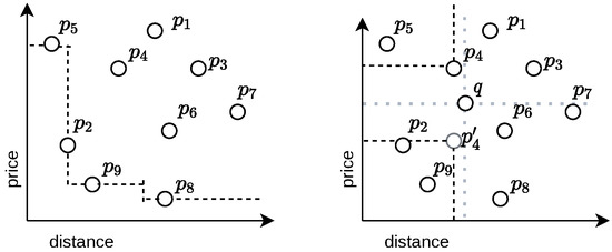 - Chen, L.; Lian, X. Dynamic Skyline Queries in Metric Spaces. In Proceedings of the 11th International Conference on Extending Database Technology: Advances in Database Technology, EDBT ’08, Nantes, France, 25–29 March 2008; ACM: New York, NY, USA, 2008; pp. 333–343. [Google Scholar] [CrossRef]