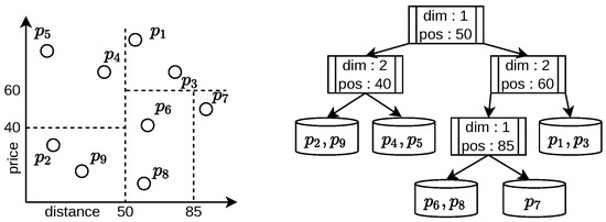 - Henrich, A. Improving the Performance of Multi-Dimensional Access Structures Based on k-d-Trees. In Proceedings of the Twelfth International Conference on Data Engineering, ICDE, New Orleans, LA, USA, 26 February–1 March 1996; Su, S.Y.W., Ed.; IEEE Computer Society: Washington, DC, USA, 1996; pp. 68–75. [Google Scholar]