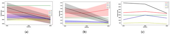 Performance of the low-level agents, each trained on one cluster. (a) Portfolio value for the agents trained on subsets of the data. (b) Sharpe ratio for the agents trained on subsets of the data. (c) Number of sells for the agents trained on subsets of the data.