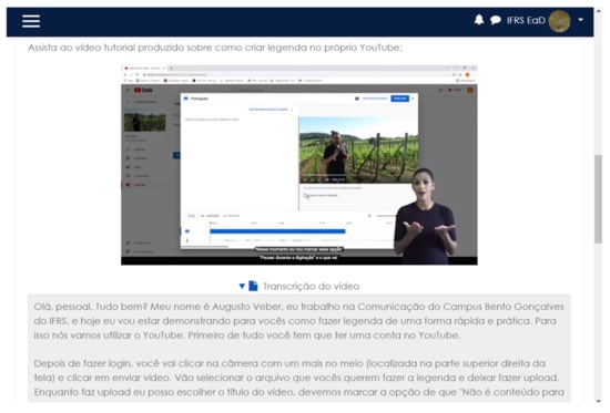 Figure 2 presents a screenshot of Aprenda Mais Platform, emphasizing its accessibility features. The page displays a video tutorial on creating YouTube captions, demonstrating the platform’s commitment to inclusivity. A window in the bottom right corner shows a sign language interpreter, providing Brazilian Sign Language (Libras) support for the deaf and hard of hearing. Below the video, there is a text box titled ‘Video Transcript’, which caters to people who are blind or visually impaired by offering a text-based version of the video’s content. These features highlight the platform’s dedication to making education accessible to all learners, regardless of their sensory abilities.