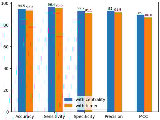 To further investigate the impact of additional information, a comparison was conducted between the results achieved by employing k-mer as additional information in the NPI-GNN method and the results obtained from the incorporation of centrality measures as additional node attributes. The results presented in Figure 6 indicate that the NPI-GNN model primarily depends more on the network structure than on the particular data sequence. By applying the network structure, NPI-GNN demonstrates its ability to provide valuable insights and analysis, showcasing its potential as a powerful tool in various domains.
