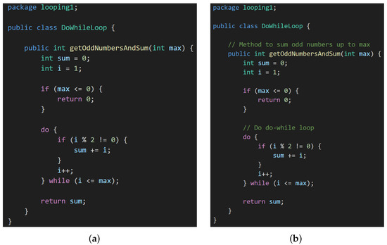 Comparison of student-written code and AI-generated code. (a) Student-written code. (b) AI-generated code.