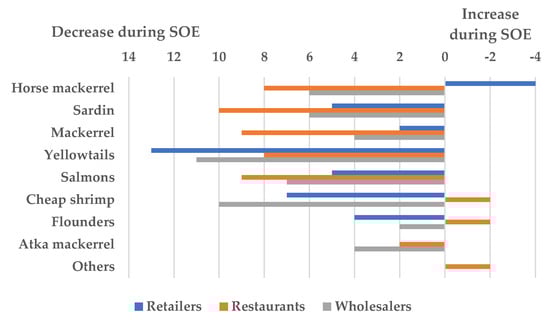 20]. They found that the demand for luxury seafood declined due to changes in consumers’ financial situations. However, Aruga (2022) also found an increase in the supply of Bluefin tuna, a well-known high-end seafood, at a wholesale market during SOE [