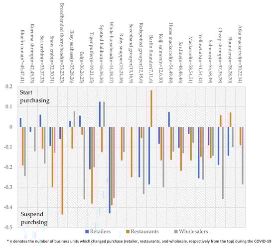Most business units across industries stopped trading the majority of seafood during the SOE. However, some retailers began trading bluefin and other luxury seafood products during this period. Together with the previous findings, these results indicate that while restaurants reduced luxury seafood, some retailers increased their trade in certain high-end species to some extent.