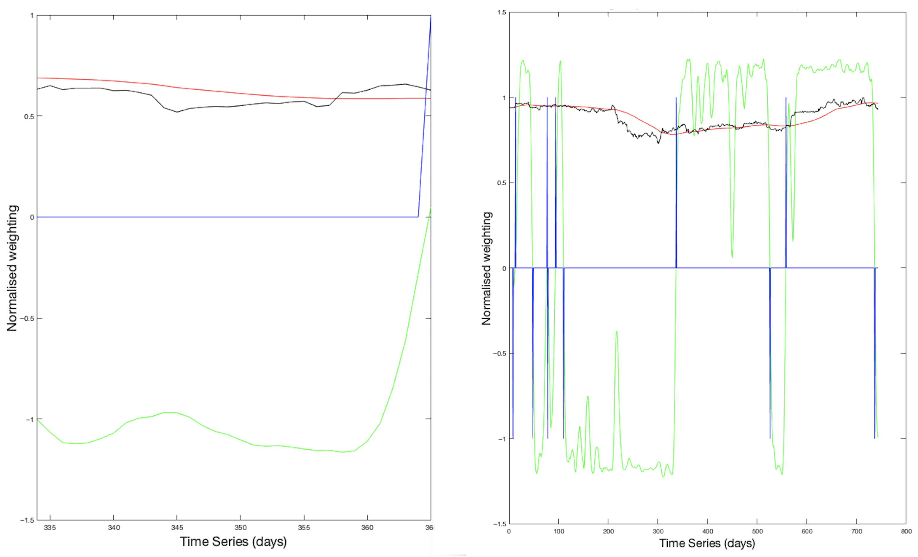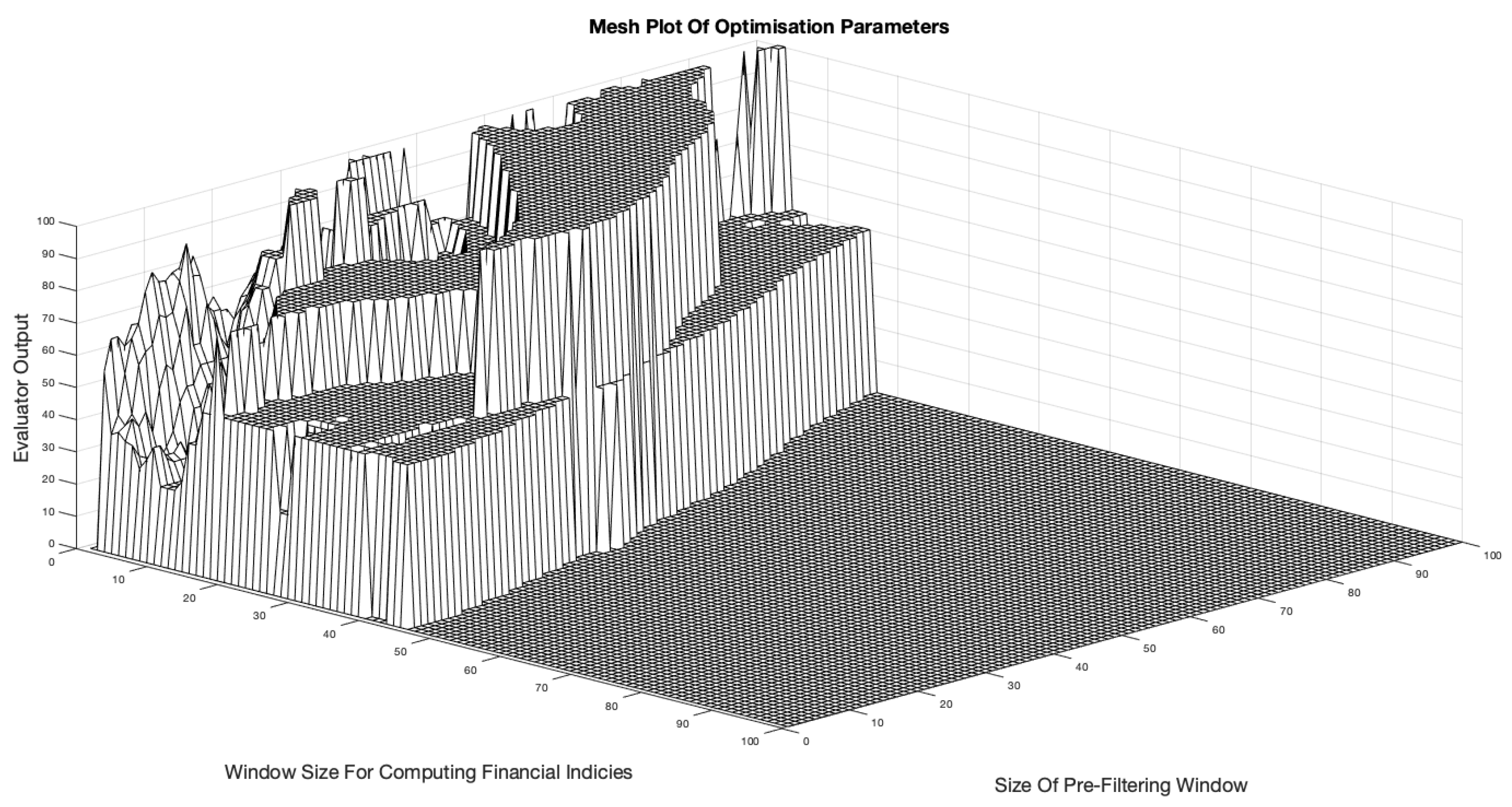 Optimisation of the code resulted in a system that could generate an output in ∼0.0001 seconds. This was a significant improvement, making its use in conjunction with a live trading system viable. This decrease in computational time allows a continuous live data stream to be used, where fast tick times of a few seconds are implementable. However, this level of data requires a marked increase in filtering or new methods of creating price data. Opening daily prices can be replaced by an average of the underlying prices of the minimum time step.