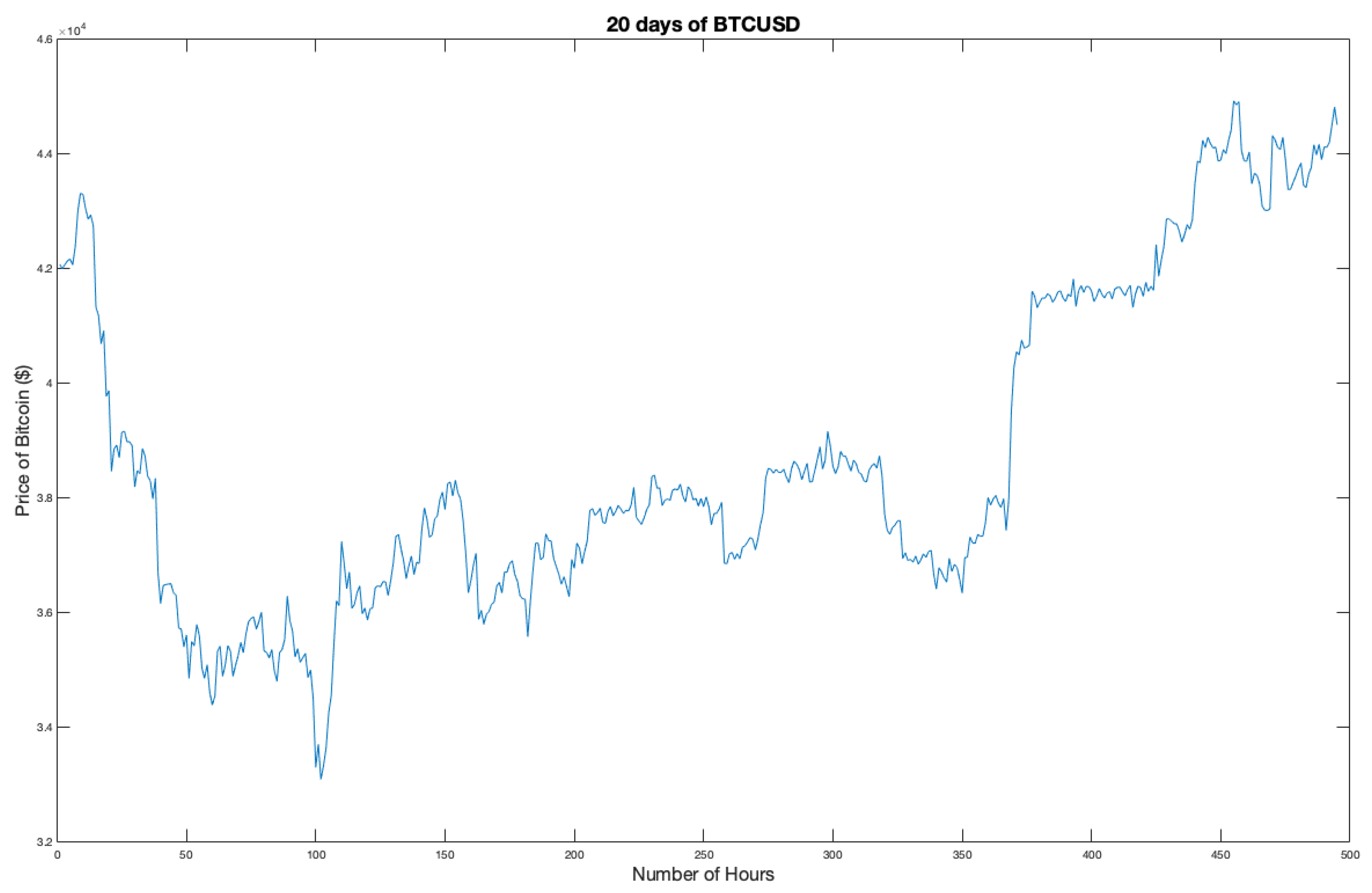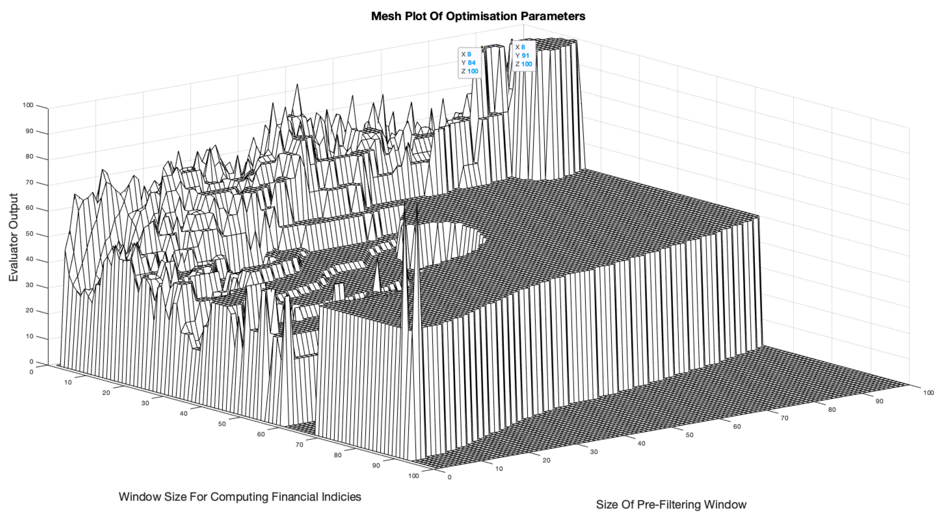 On re-evaluation of the approach, it becomes clear that any non-linear function based on a window of ‘stable’ data will only continue to display this trend when evolved forward in time. This is clearly a fundamental flaw, as, by definition, this approach will not achieve the goal of predicting a future change in trend. Extending the window beyond the creates an equation that accounts for both the low volatility trend and the high volatility movements, therefore giving a more accurate representation of the data and a better basis for future estimation. Tests on a window length of ∼30 produced vastly improved results, suggesting that increasing the window length is not the primary way to improve estimations. Nevertheless, increases did improve prediction accuracy by ∼20%. Thus, it can be concluded that an increase in the window length, using stable and unstable data, increases future price prediction accuracy.
