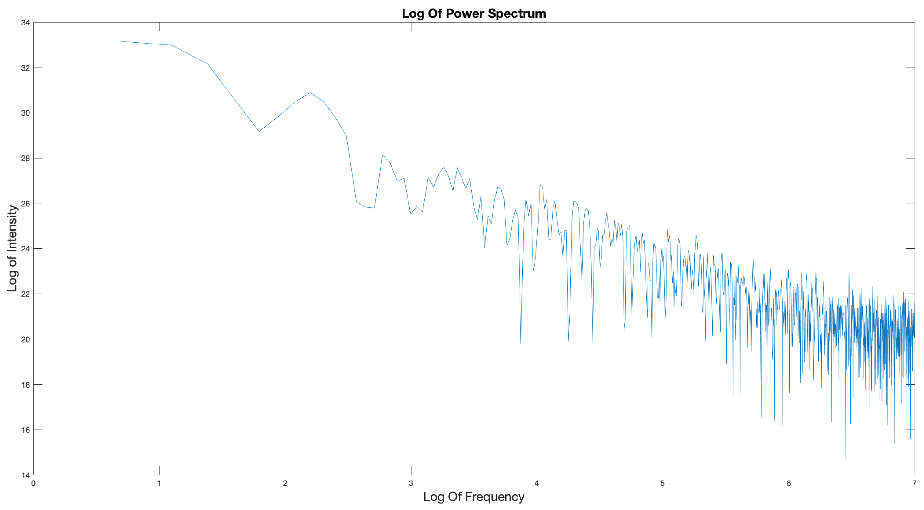 can be obtained by determining the gradient of a linear regression applied to the power spectral log-log plot. In computational terms, application of the least squares regression formula provides a value of