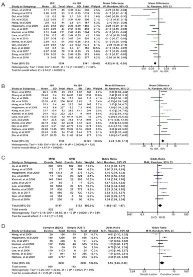 | Variables | Number of Studies | In-Stent Restenosis | No In-Stent Restenosis | p-Value of Heterogeneity | I2 (%) | Odds Ratio | Model | 95% CI | p-Value of Eggers’s Test | p-Value | ||