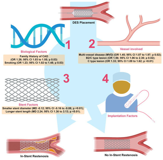 - Cheng, G.; Chang, F.J.; Wang, Y.; You, P.H.; Chen, H.C.; Han, W.Q.; Wang, J.W.; Zhong, N.E.; Min, Z.Q. Factors Influencing Stent Restenosis after Percutaneous Coronary Intervention in Patients with Coronary Heart Disease: A Clinical Trial Based on 1-Year Follow-Up. Med. Sci. Monit. 2019, 25, 240–247. [Google Scholar] [CrossRef] [PubMed]