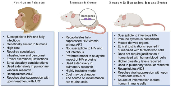 Figure 4. Comparison between animal models to study HIV-associated pulmonary vascular comorbidities.