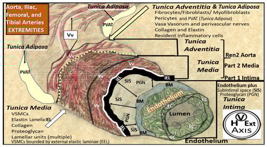 - Hayden, M.R.; Sowers, J.R.; DeMarco, V.G. Ultrastructure study of the transgenic REN2 rat aorta—Part 2: Media, external elastic lamina, and adventitia. Biomed. Rev. 2019, 30, 111–123. [Google Scholar] [CrossRef]