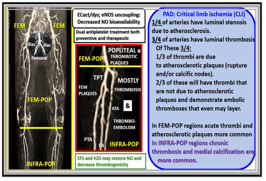 - Narula, N.; Olin, J.W.; Narula, N. Pathologic Disparities Between Peripheral Artery Disease and Coronary Artery Disease. Arter. Thromb. Vasc. Biol. 2020, 40, 1982–1989. [Google Scholar] [CrossRef] [PubMed]