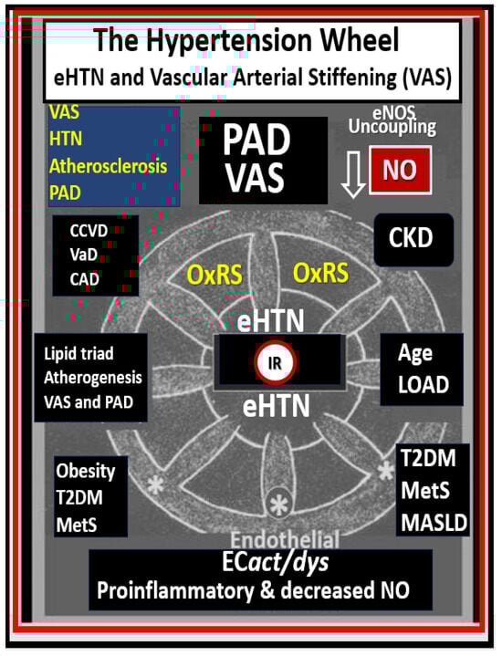 Hayden, M.R. Peripheral Artery Disease: Atherosclerosis, Decreased Nitric Oxide, and Vascular Arterial Stiffening. J. Vasc. Dis. 2025, 4, 21. https://doi.org/10.3390/jvd4020021