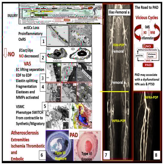 - Ismaeel, A.; Brumberg, R.S.; Kirk, J.S.; Papoutsi, E.; Farmer, P.J.; Bohannon, W.T.; Smith, R.S.; Eidson, J.L.; Sawicki, I.; Koutakis, P. Oxidative Stress and Arterial Dysfunction in Peripheral Artery Disease. Antioxidants 2018, 7, 145. [Google Scholar] [CrossRef]