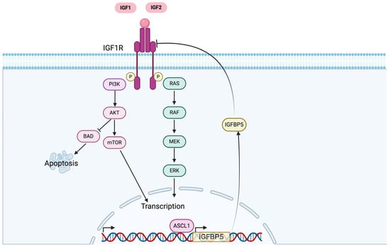 Remarkably, ASCL1 was found to exert its influence through the modulation of IGFBP5, an inhibitor of IGF-1R activity. Strikingly, the inhibition of ASCL1 led to the downregulation of IGFBP5 expression, consequently reactivating the IGF1R pathway and eliciting a profound reduction in cell proliferation [31].