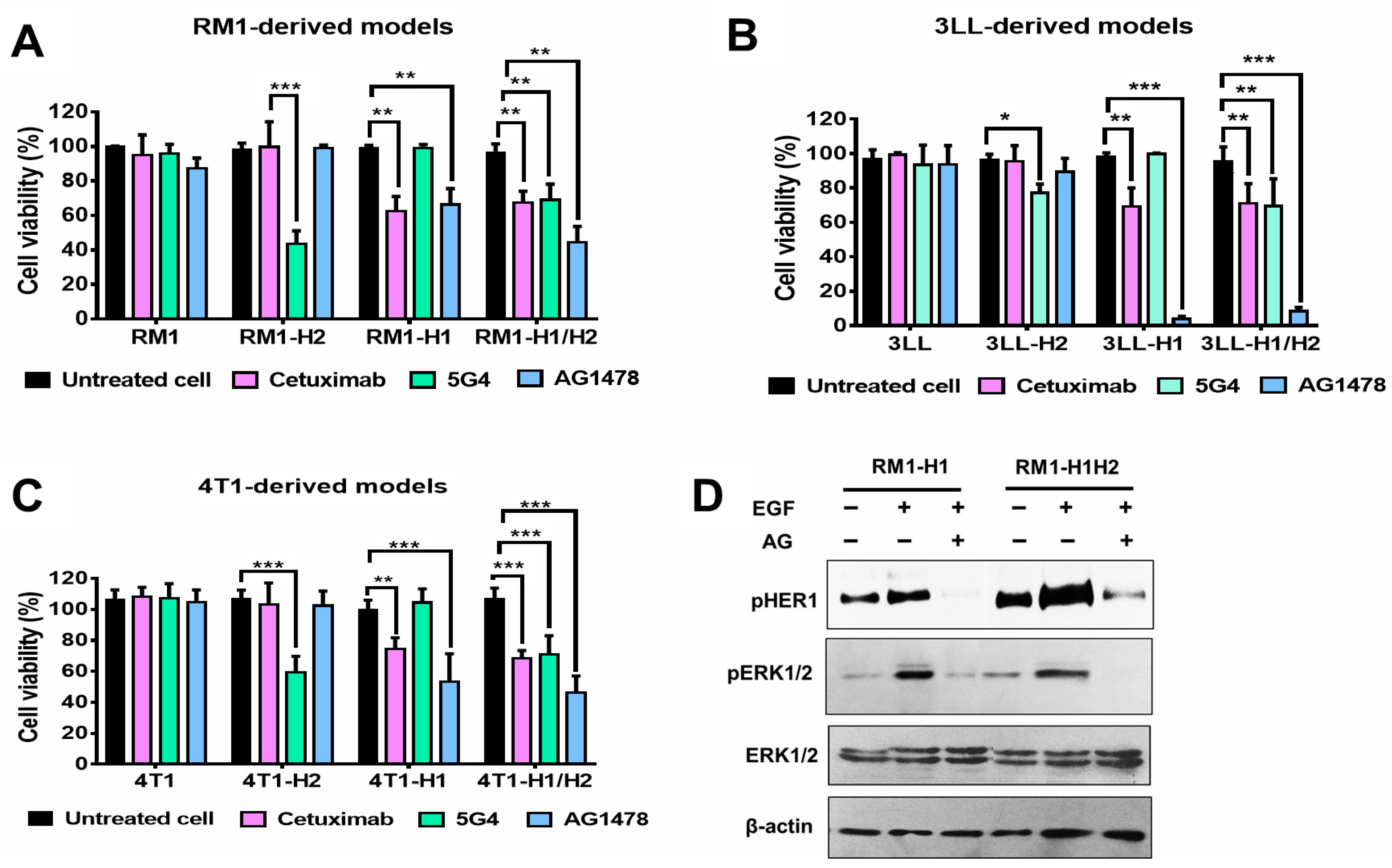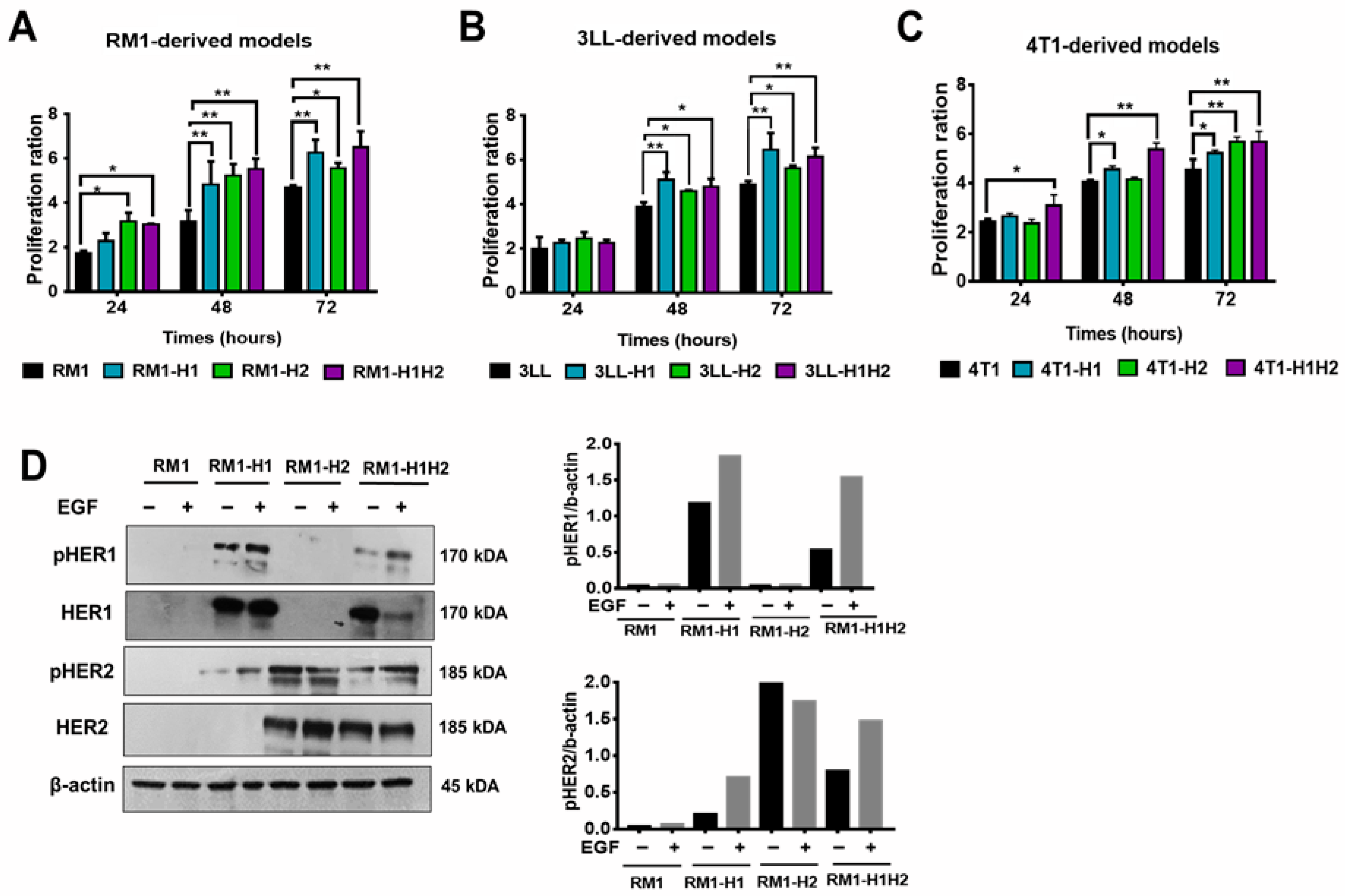 3.2. In Vitro Characterization of the Functionality of HER1 and/or HER2 Receptors in the Generated Models