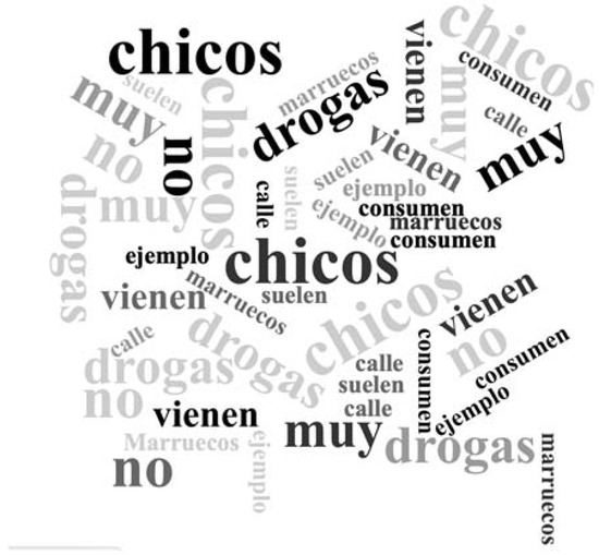 However, it is true that most informants report that the minors under study come from lives marked by abuse, drug and alcohol abuse, school dropout, unemployment, and fighting. The words most frequently repeated by interviewees when asked about the type of environment from which these minors come were “violence”, “boys”, “street”, “drugs”, and “consumption”, amongst others [Figure 2].