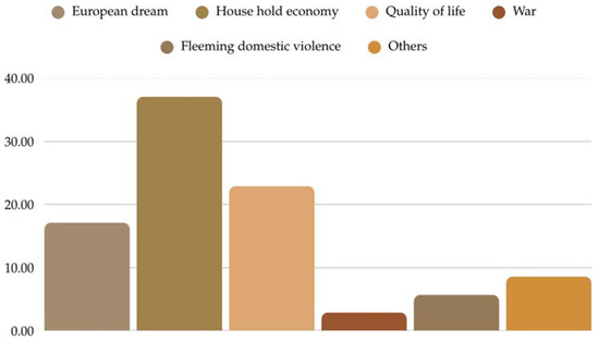 In addition, multiple factors emerged that influence the decision to migrate. The most important factor in terms of the most commonly mentioned determinant appears to be to economically support one’s family (39.3%). This was followed by quality of life (24.3%) and the pursuit of the European dream (18.1%), which also emerged as main factors. Finally, a number of other factors were also mentioned, although to a lesser extent; namely war, illnesses that cannot be treated in home countries due to insufficient healthcare provision, family reunification, fleeing domestic violence, and, least of all, the possibility of studying [Figure 3].