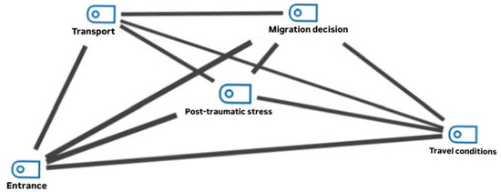 Figure 5 presents the relationship between factors pertaining to the migratory journey and post-traumatic stress. Given the subsequent effects of this stress on child development, it is clear that migration conditions, to a large extent, affect both cognitive and emotional aspects of the child.