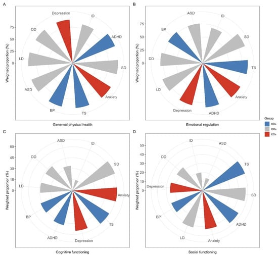 According to the Global Burden of Disease Study 2019 [1], approximately 1 in 10 children worldwide suffer from mental, behavioral, and developmental disorders (MBDDs), leading to different adverse health consequences. Numerous studies have highlighted the compromised physical health of children with MBDDs [2,3,4]. Assessing general physical health offers a convenient snapshot of a patient’s overall well-being [5]. For example, children with MBDDs, such as autism spectrum disorder (ASD), often encounter challenges in regulating their emotions compared to typically developing (TD) individuals [6]. Moreover, children with MBDDs, including learning disabilities (LDs) and ASD, frequently grapple with difficulties in cognitive tasks [7] and social interactions [8]. Collectively, global efforts to improve the health outcomes of children with MBDDs are of paramount importance.