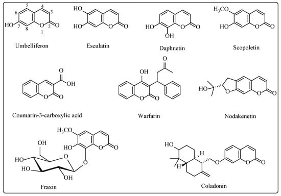 Chemical structures of coumarin compounds possessing anti-QS and antibiofilm activity.
