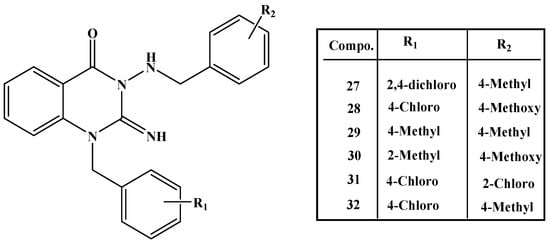 The structure of compounds 27 to 32: Quinazolinone derivatives.