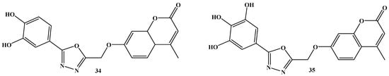 The structure of compounds 34 & 35: Coumarin-linked 1,3,4-oxadiazole hybrid derivatives.