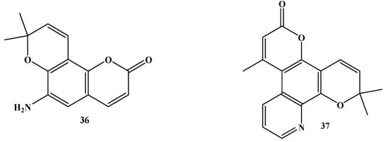The structure of compounds 36 & 37: Bis-fused pyridopyranocoumarins derivatives.
