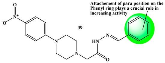 The structure of compound 39: Hydrazone derivative containing piperazine.
